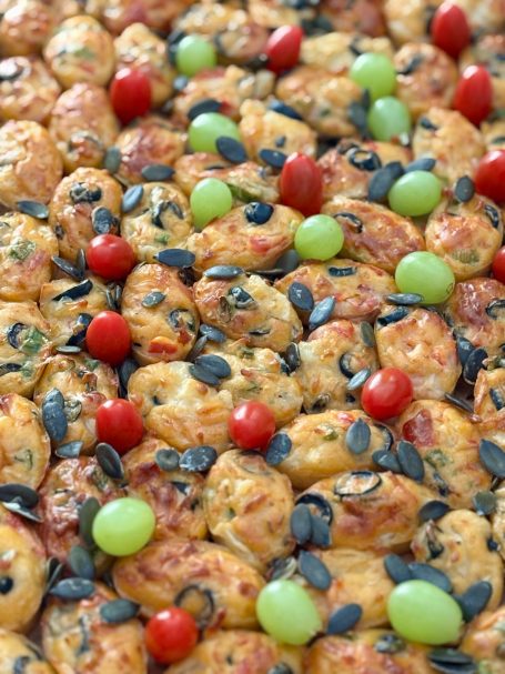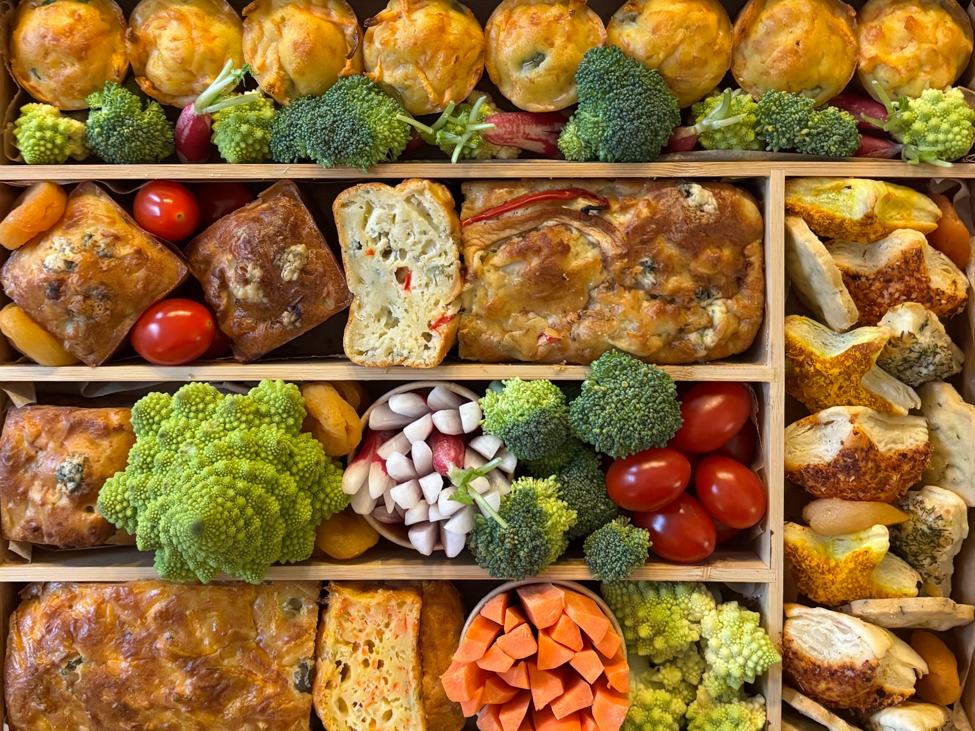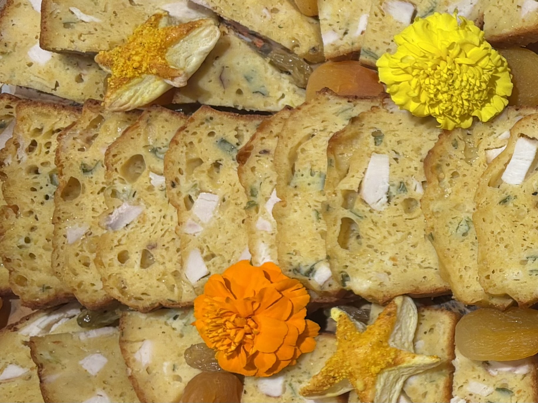 Nos cakes peuvent également contenir des fruits à coques, des arachides, de la moutarde et toutes sortes de fromages de nos régions.